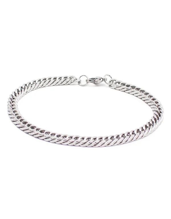 Βραχιόλι αλυσίδα σε ασημί χρώμα. Αποτελεί ένα διαχρονικό και κομψό αξεσουάρ για κάθε περίσταση. Ο καθαρός, μεταλλικός σχεδιασμός του προσδίδει διακριτική λάμψη και ταιριάζει εύκολα με κάθε look. Φορέστε το μόνο του για μια minimal και elegant εμφάνιση ή συνδυάστε το με άλλα βραχιόλια για ένα πιο μοντέρνο, layered στυλ που ξεχωρίζει.