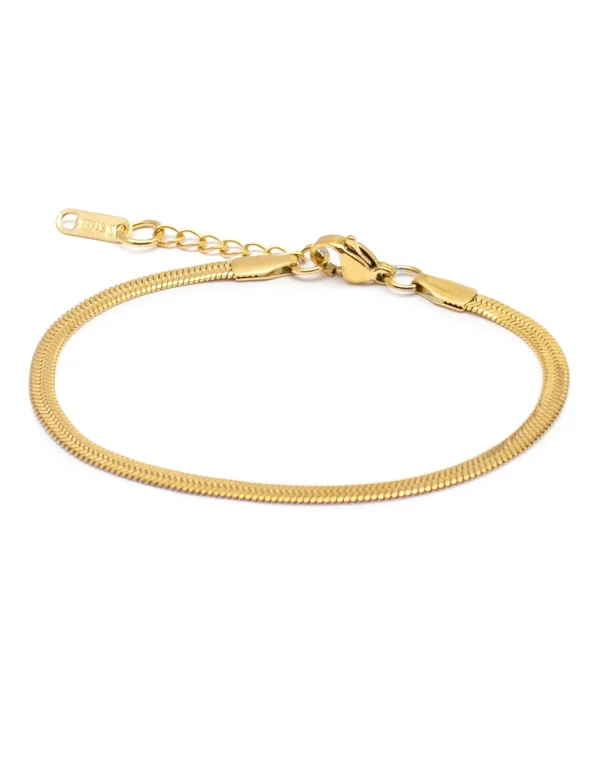 Βραχιόλι snake σε χρυσό χρώμα. Αποτελεί ένα διαχρονικό και κομψό αξεσουάρ για κάθε περίσταση. Ο καθαρός, μεταλλικός σχεδιασμός του προσδίδει διακριτική λάμψη και ταιριάζει εύκολα με κάθε look. Φορέστε το μόνο του για μια minimal και elegant εμφάνιση ή συνδυάστε το με άλλα βραχιόλια για ένα πιο μοντέρνο, layered στυλ που ξεχωρίζει.